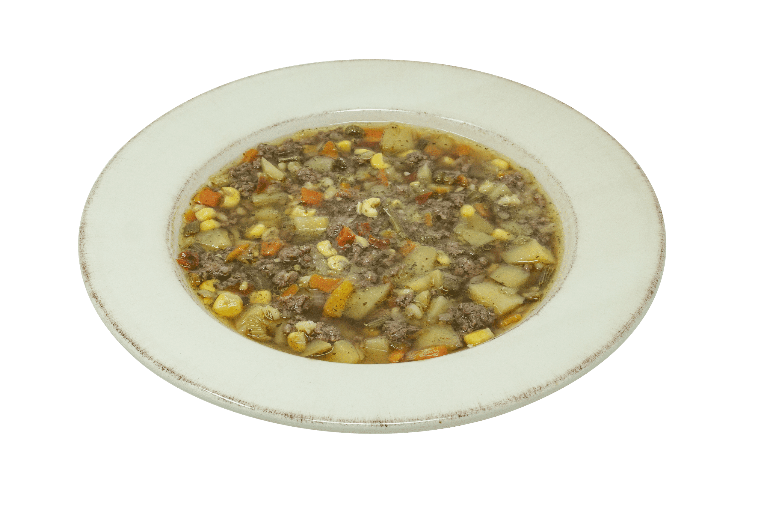 Ingredients: Barley, onion, corn, carrot, celery, green pepper, red pepper, garlic, parsley, bay leaf.
